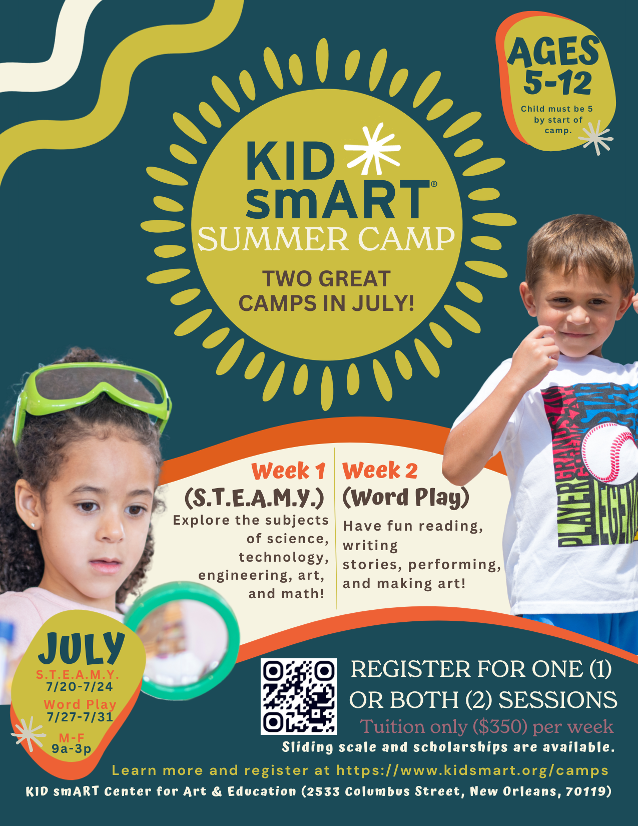 This summer marks an exciting new chapter for KID smART as we launch our very first Summer Camp experience! Designed to spark curiosity, creativity, and confidence, our week-long camps invite young learners to explore the powerful connection between art and STEAM (Science, Technology, Engineering, Art, and Math).