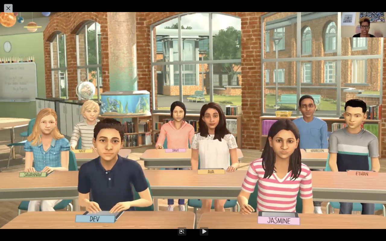 In addition to teaching this year, I have had the opportunity to work on a contract between KID smART and Dr Rhonda Bondie’s Agile Teacher Lab/Reach Every Reader at Harvard’s Graduate School of Education. The Agile Teacher Lab is focused on using a VR software called Mursion to simulate a classroom environment. Teachers from all over the world can log in using Zoom and are presented with an instructional coach named Bennett who guides them through the process of teaching to a group of middle school students.
