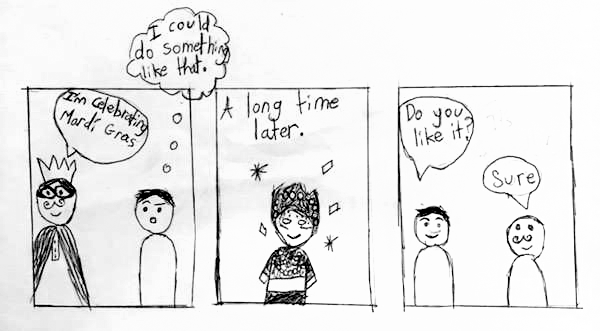 Mrs. Mossingβs 8th grade social studies class has been impressing me since our very first project together. Our very first assignment was to translate a report they had written about Louisianaβs outside cultural influences into a three panel comic. The tools that we had recently learned about were the power of the narratorβs voice, setting and background, and costumes (youβll see many of the characters have hats!).