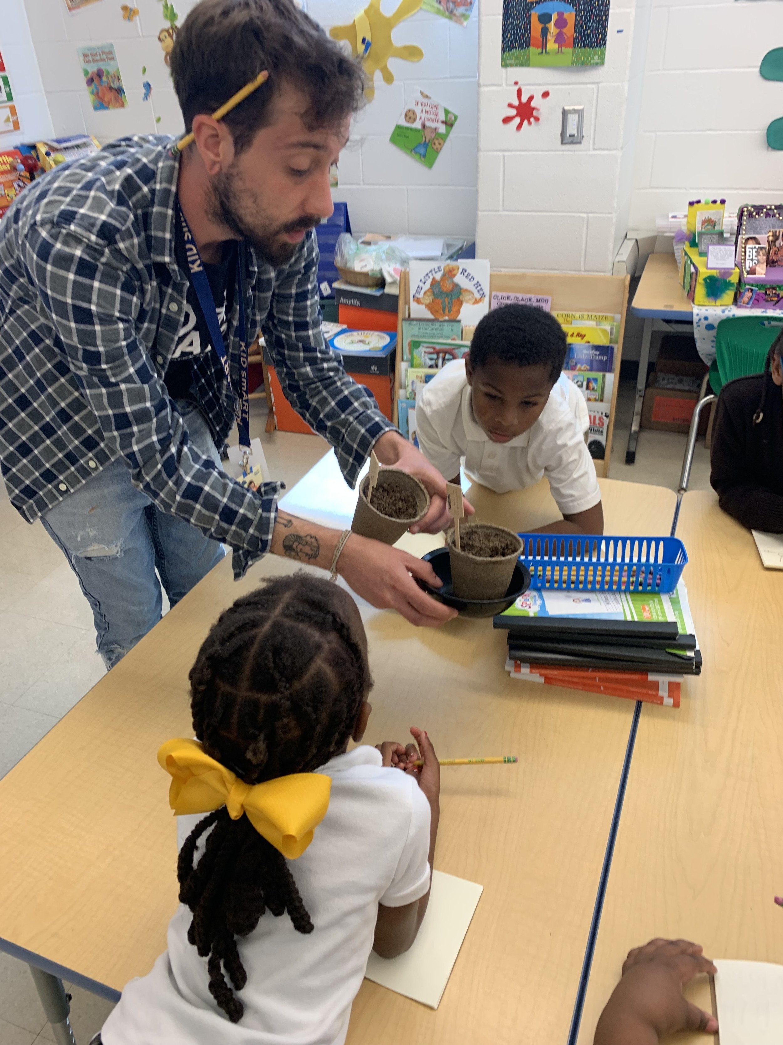 As a way to emphasize to the students that plants need three very important things to survive (sunlight, water, and oxygen), we decided to plant our seeds into 4 separately grouped pots: